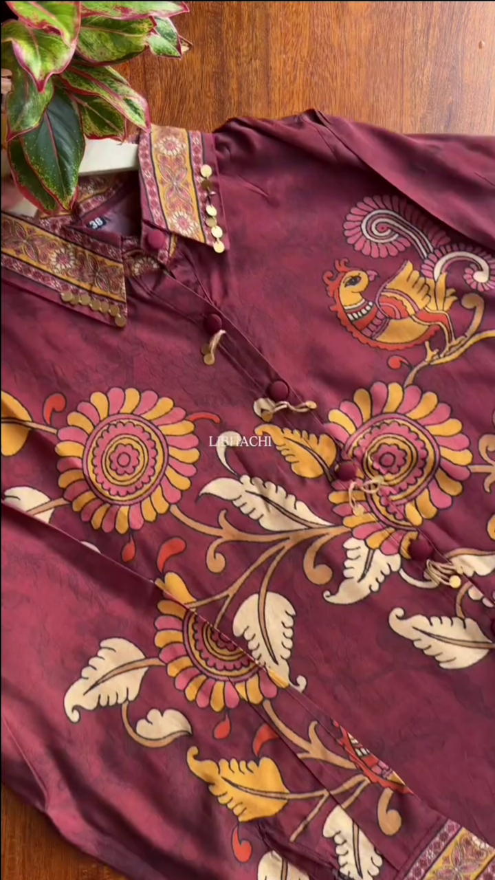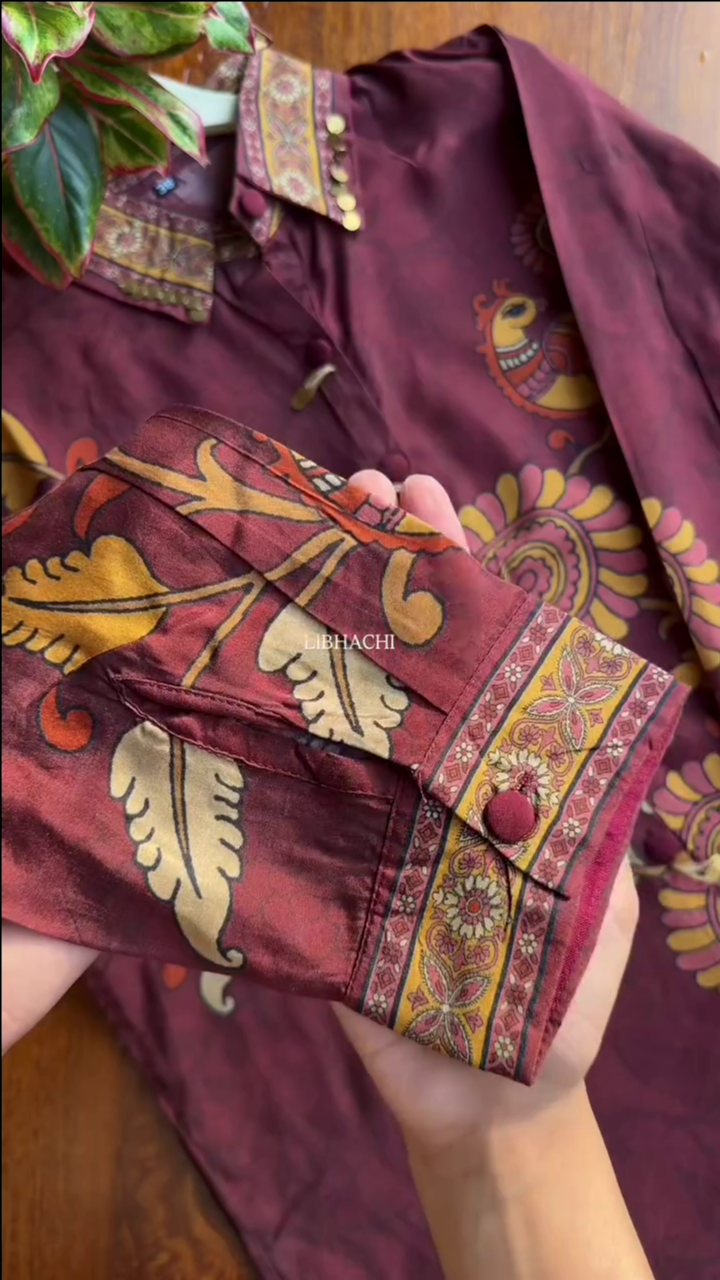 Be the first to review “Maroon Cotton Short Kurta With Bold Yellow Floral Block Prints”