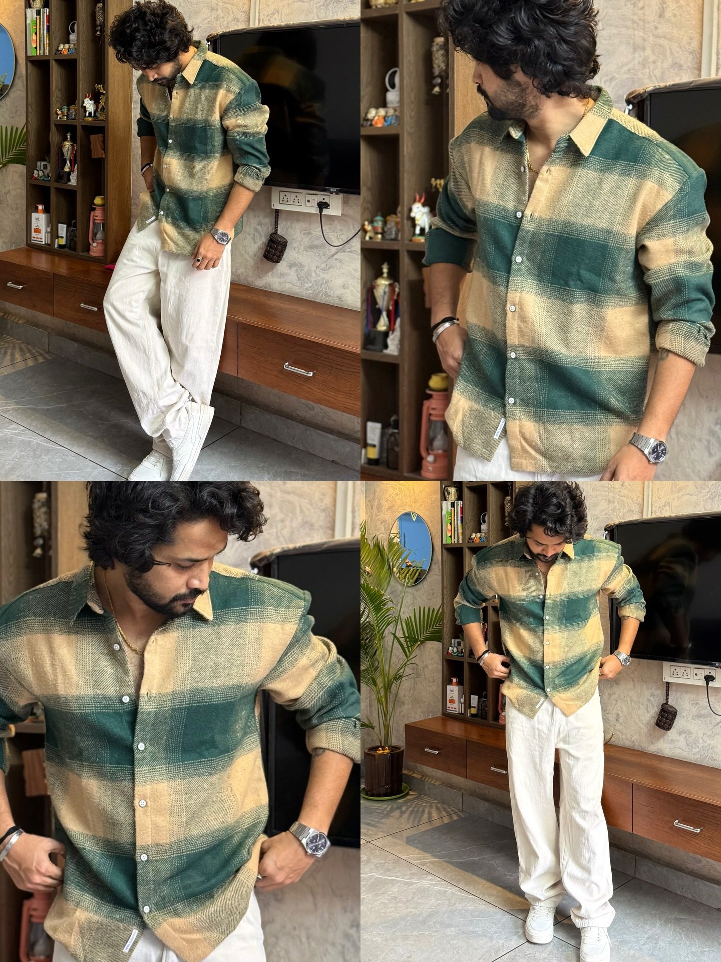 Redefine your cold-weather wardrobe with the Aurora Plaid Heavyweight Flannel. This isn’t your standard plaid; it is a sophisticated fusion of traditional Americana and contemporary street-style aesthetics. Featuring a unique ombré-effect check pattern that transitions through deep forest teal, moss green, and warm sandy ochre, this shirt is designed to be the definitive anchor for your seasonal layering.