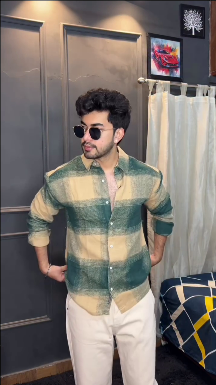 1. The Fluid Contrast: Pair this heavy top with off-white or cream wide-leg linen trousers to brighten the ensemble and highlight the ochre tones in the plaid.