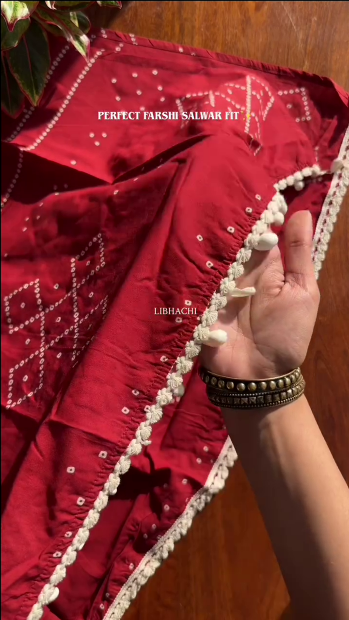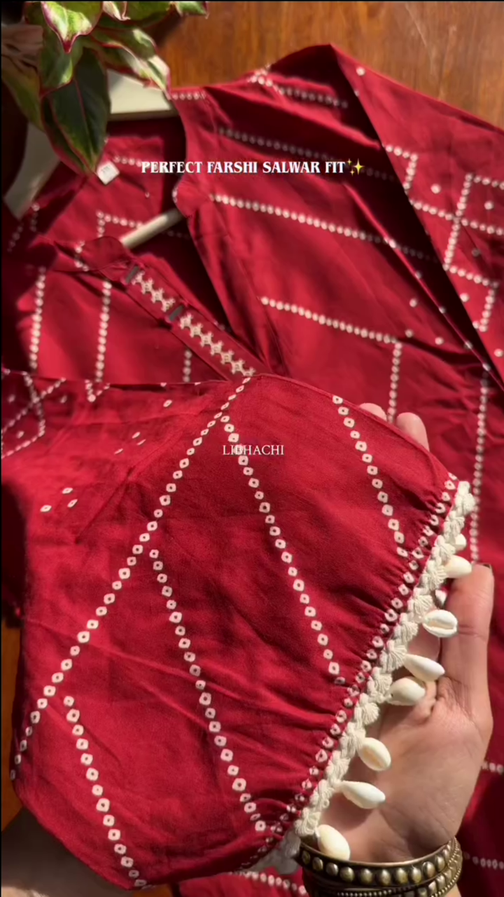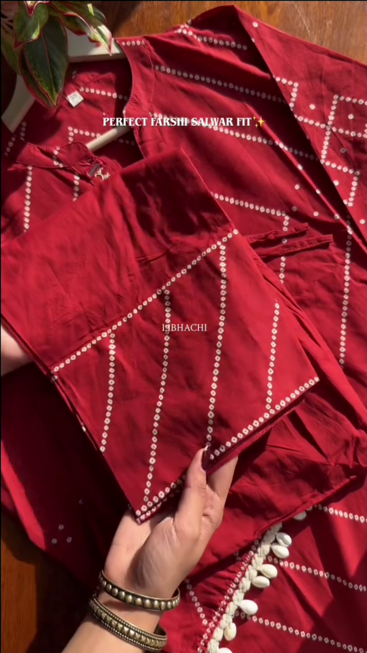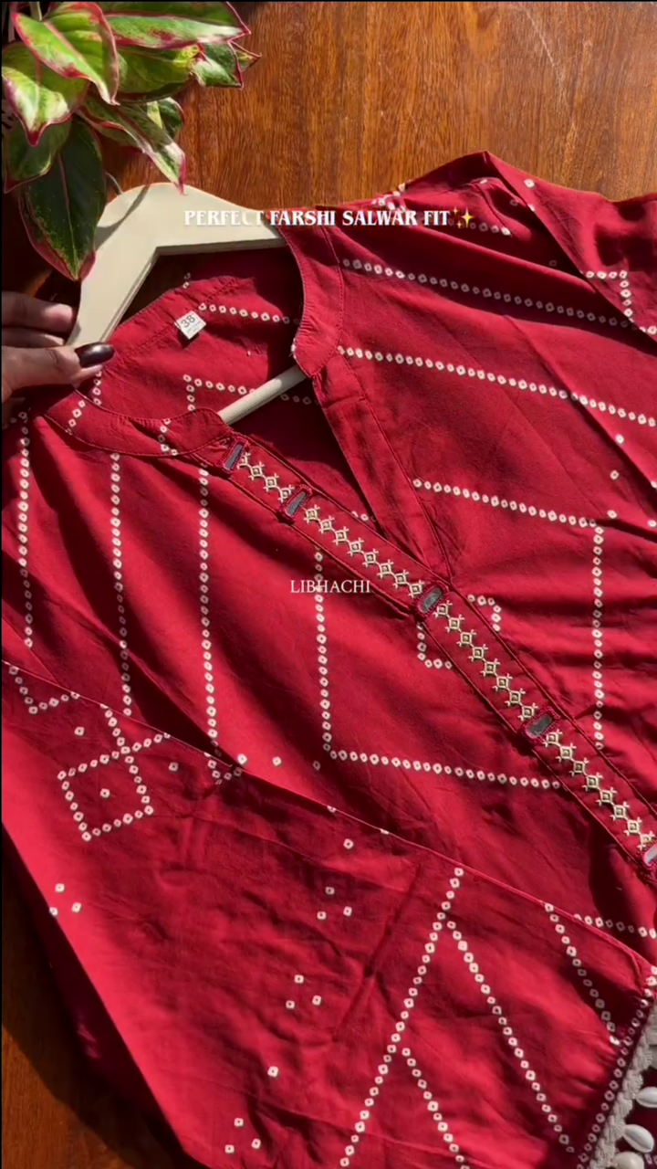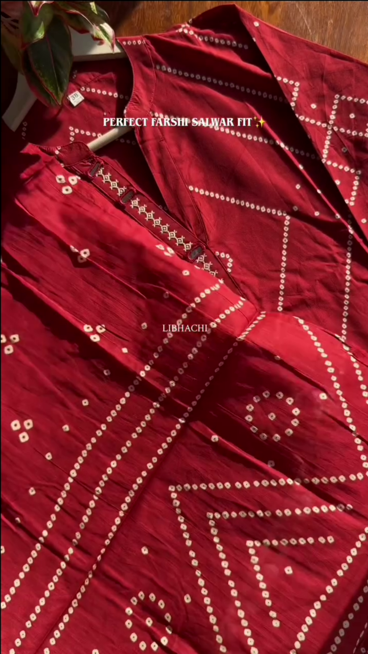 Be the first to review “Red Bandhani Printed Straight Fit Kurta Set”