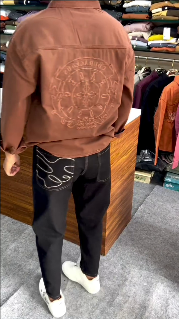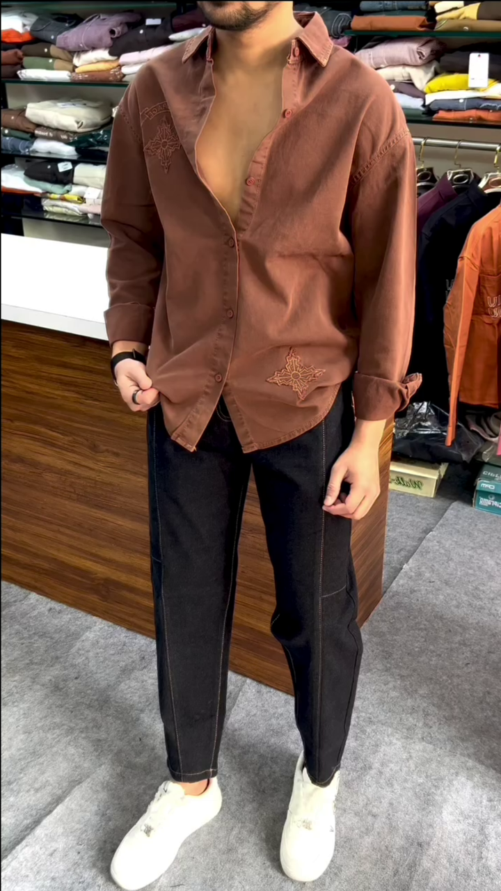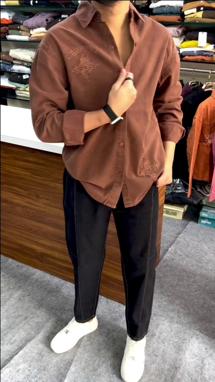 Be the first to review “Rust Brown Embroidered Relaxed Fit Casual Shirt”
