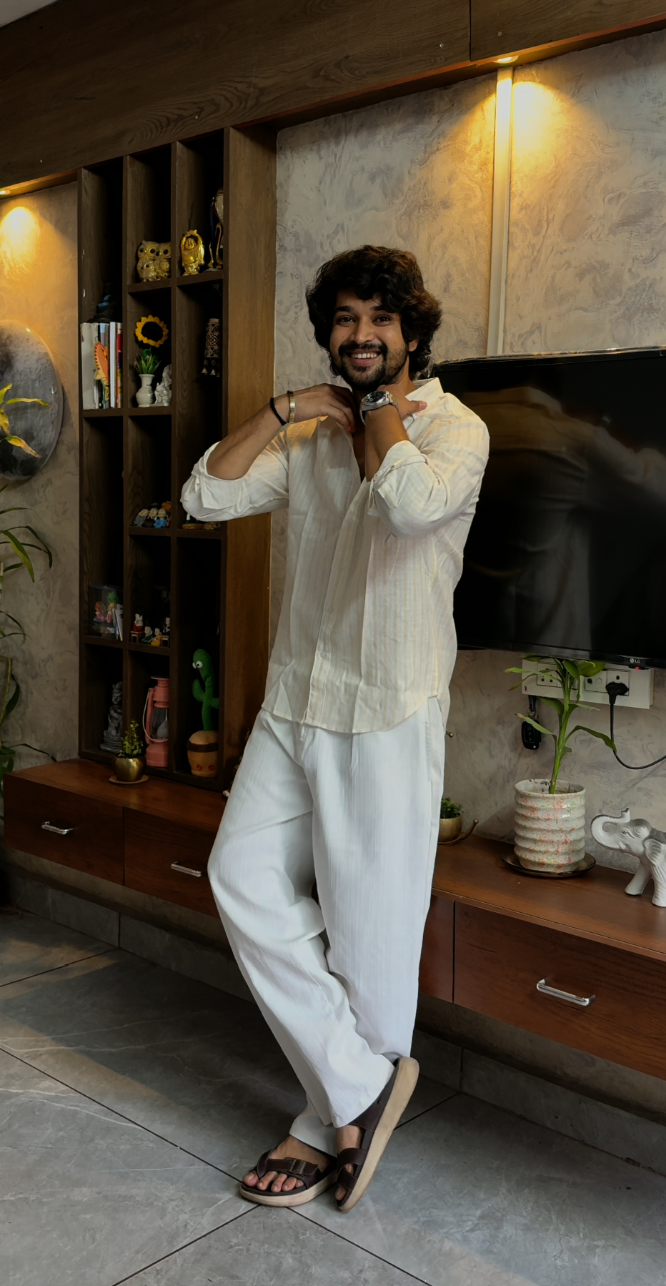 • The Sunset Evening: Wear it unbuttoned over a white supima cotton tank top and olive-green linen shorts for a textured, multi-layered aesthetic perfect for coastal dinners.