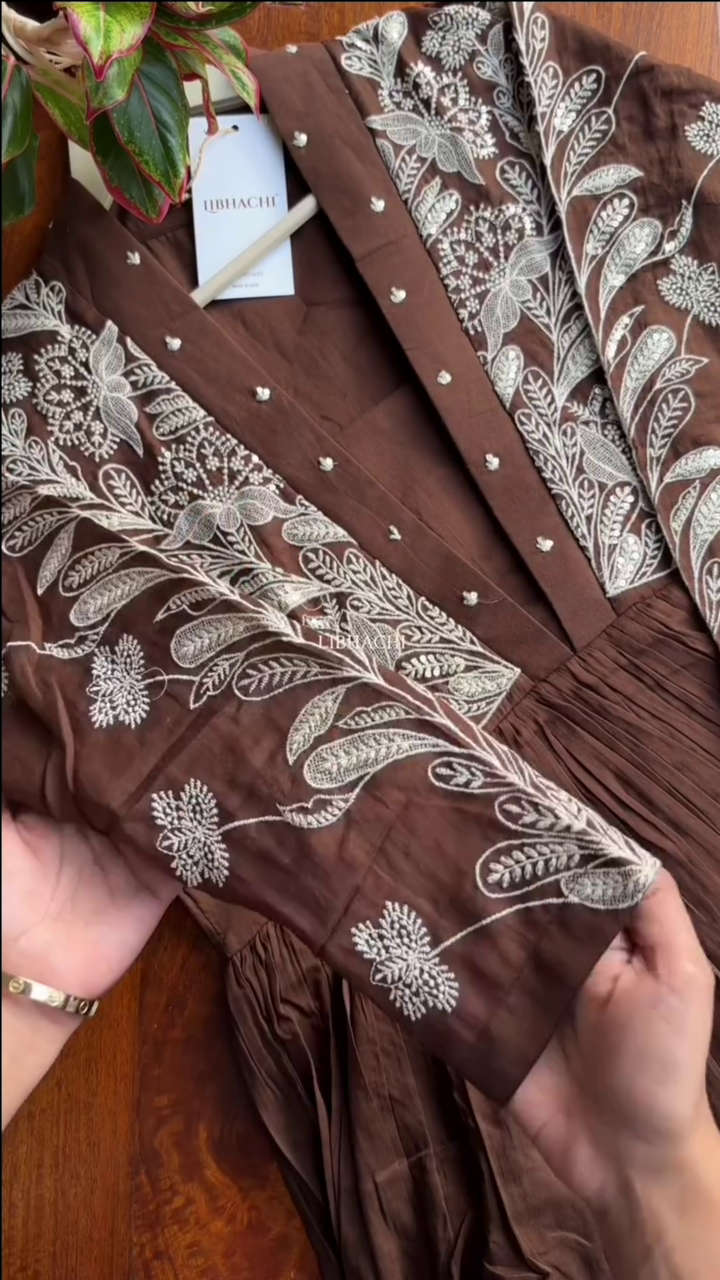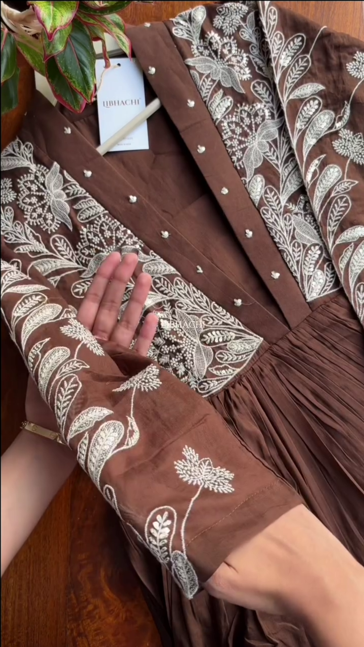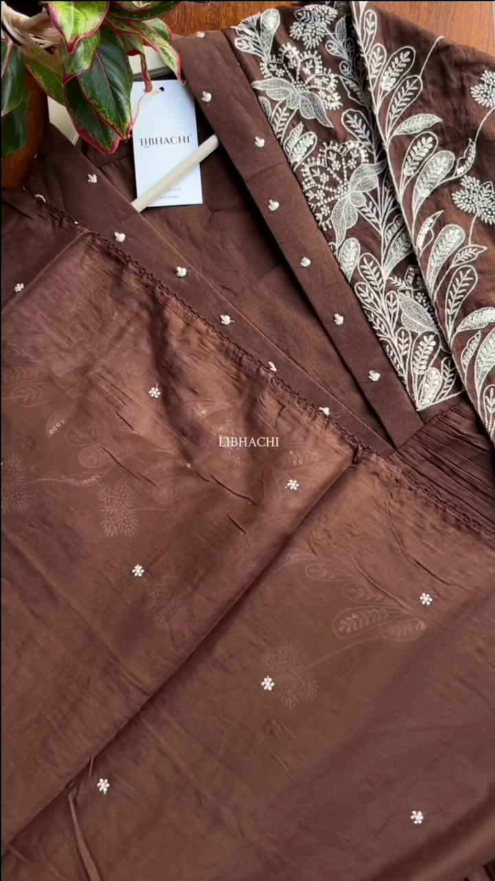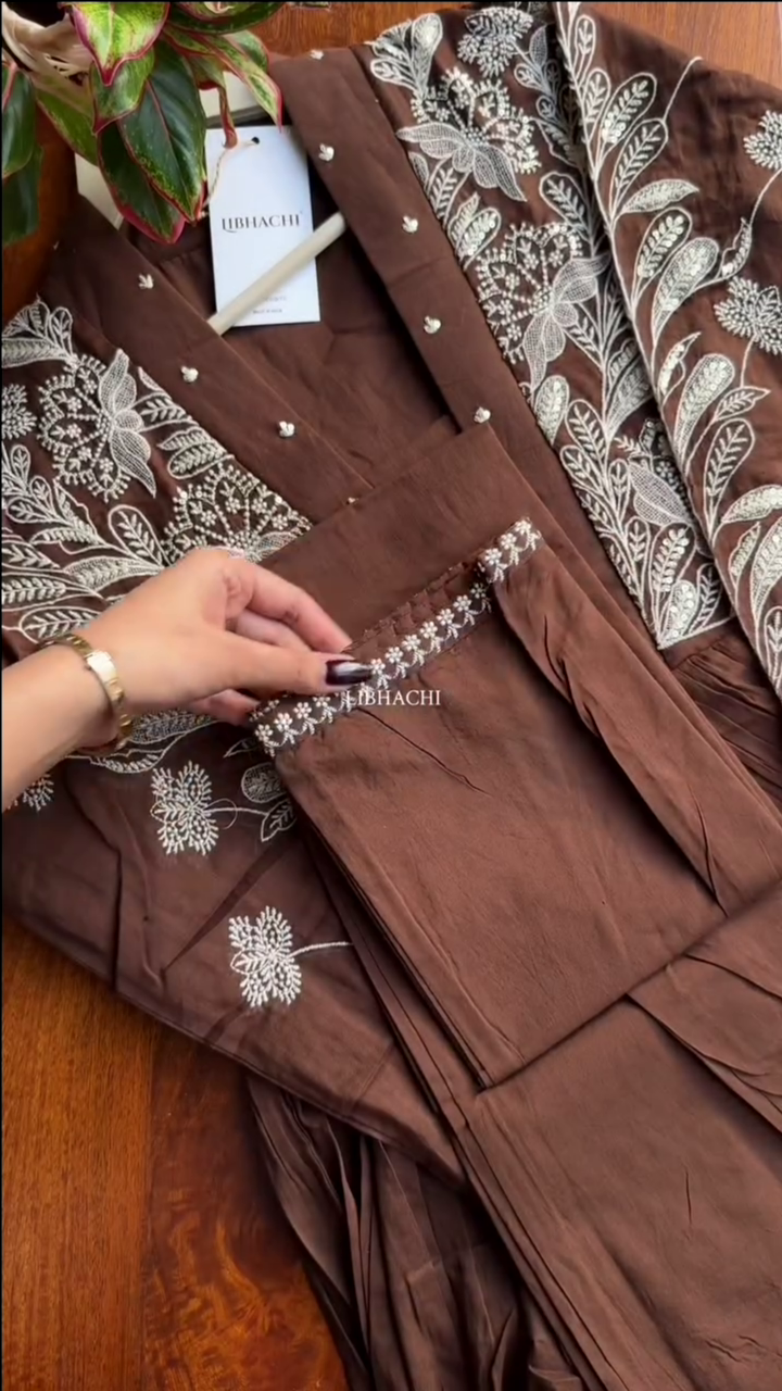 Women Brown Embroidered  Work Pure Cotton Kurta Set With DupattaWomen Brown Embroidered Work Pure Cotton Kurta Set With Dupatta