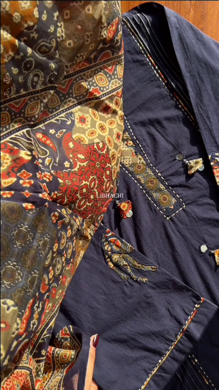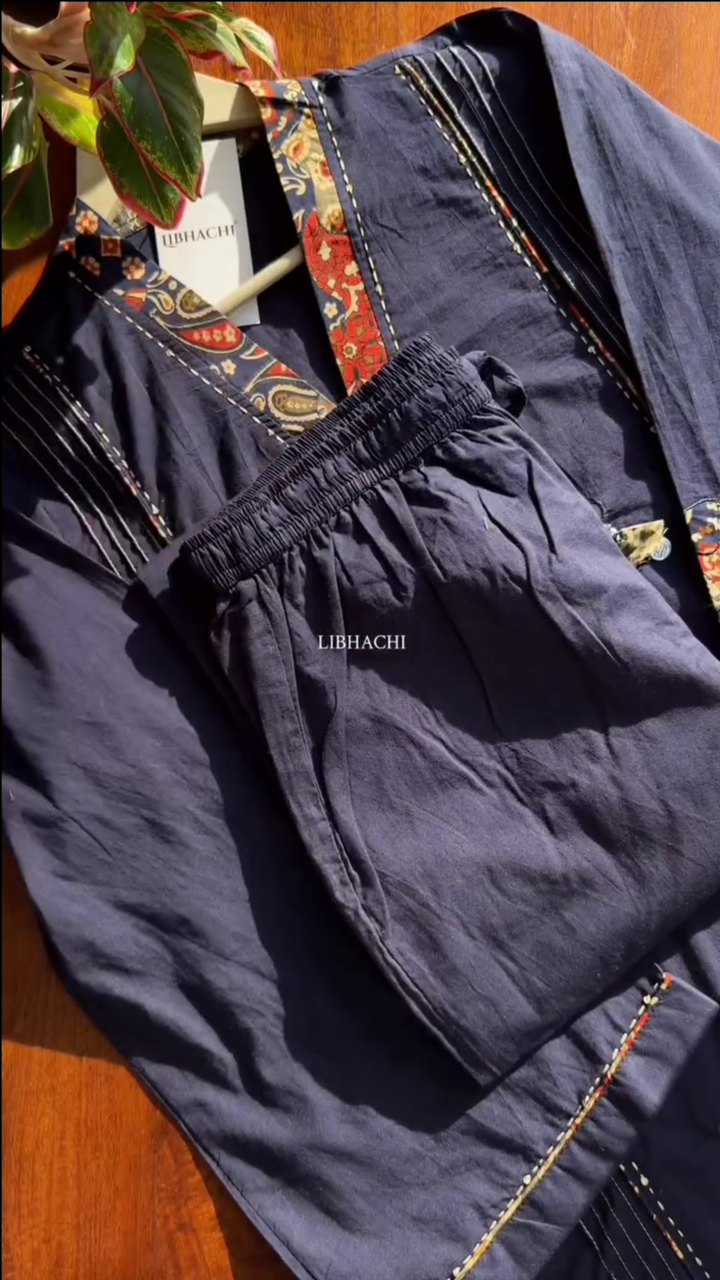 Women Mirror Work Pure Cotton Kurta With Trouser - BlueWomen Mirror Work Pure Cotton Kurta With Trouser – Blue